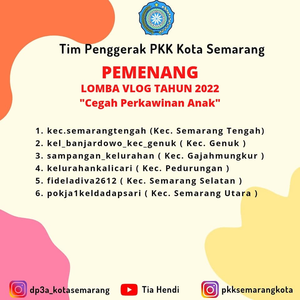Kemudian, pada hari Rabu (13/4), bertempat di kantor PKK Kota Semarang, digelar acara penyerahan hadiah untuk para juara Vlog dan lomba administrasi PKK. Hadiah diseahkan oleh Ketua PKK Kota Semarang, ibu Tia Hendi Hendrar Prihadi yang juga ibu walikota Semarang.